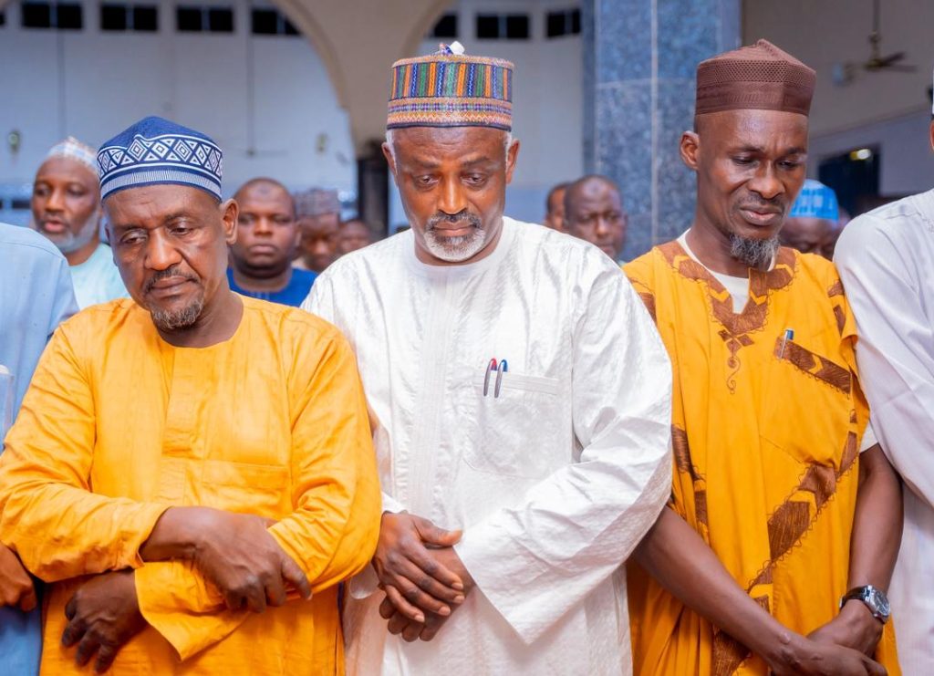 Katsina State Governor, Malam Dikko Umaru Radda, alongside the Deputy Governor, Hon. Malam Faruk Lawal, joined hundreds of Muslim at the funeral prayer of the late Hajia Laila Yunusa.